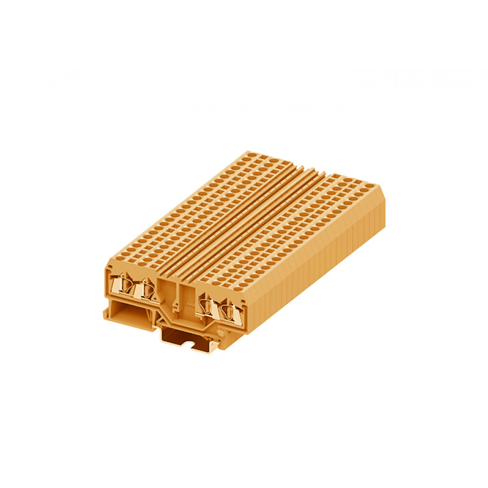 Проходная клемма, с разрывом цепи, 4 точки подключения, тип фиксации провода: пружинный, номинальное сечение: 2,5 мм кв., 24A, 800V, ширина: 5 мм, цвет: оранжевый, тип монтажа: DIN35