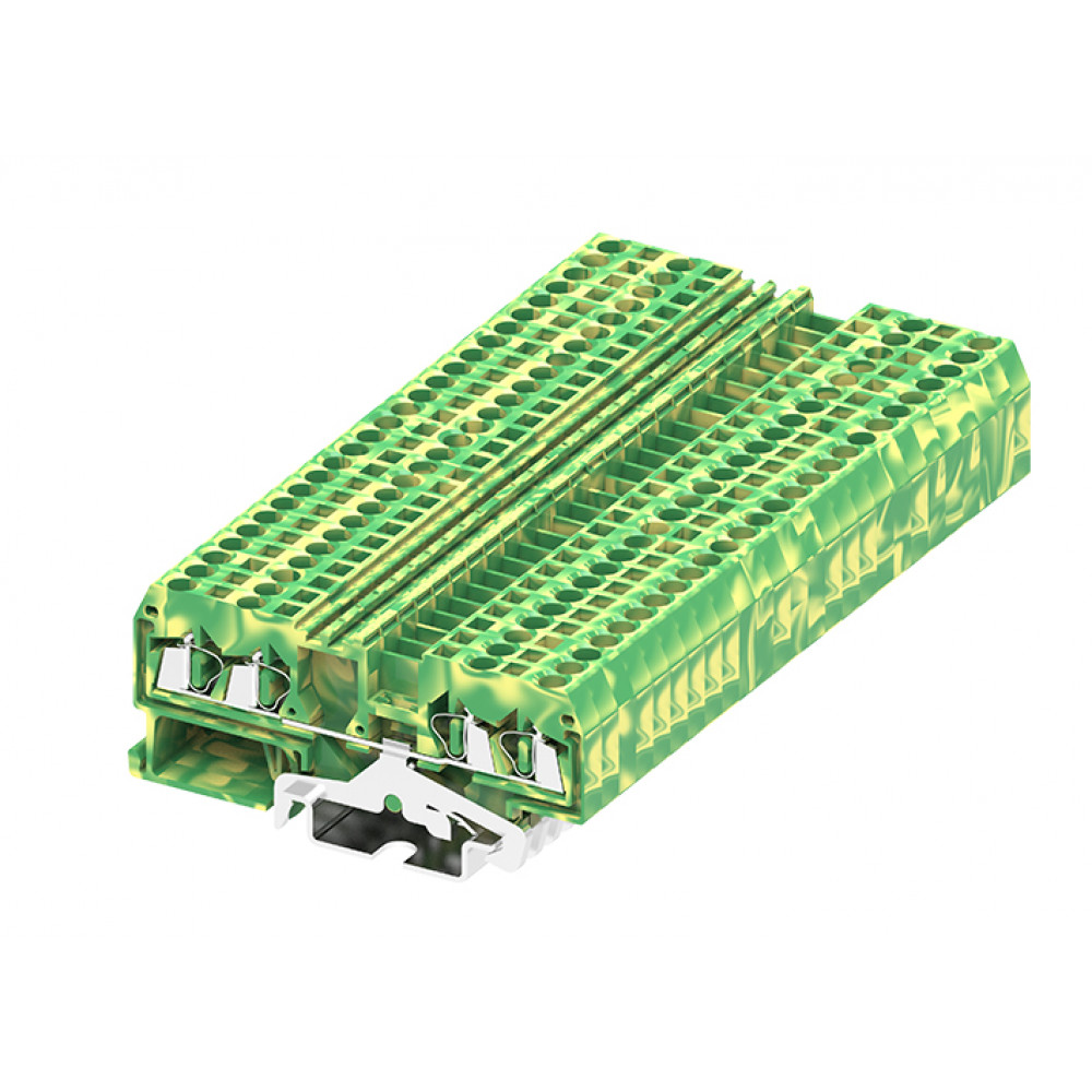Заземляющая клемма, 4 точки подключения, тип фиксации провода: пружинный, номинальное сечение: 2,5 мм кв., 800V, ширина: 5,2 мм, цвет: желто-зеленый, тип монтажа: DIN35