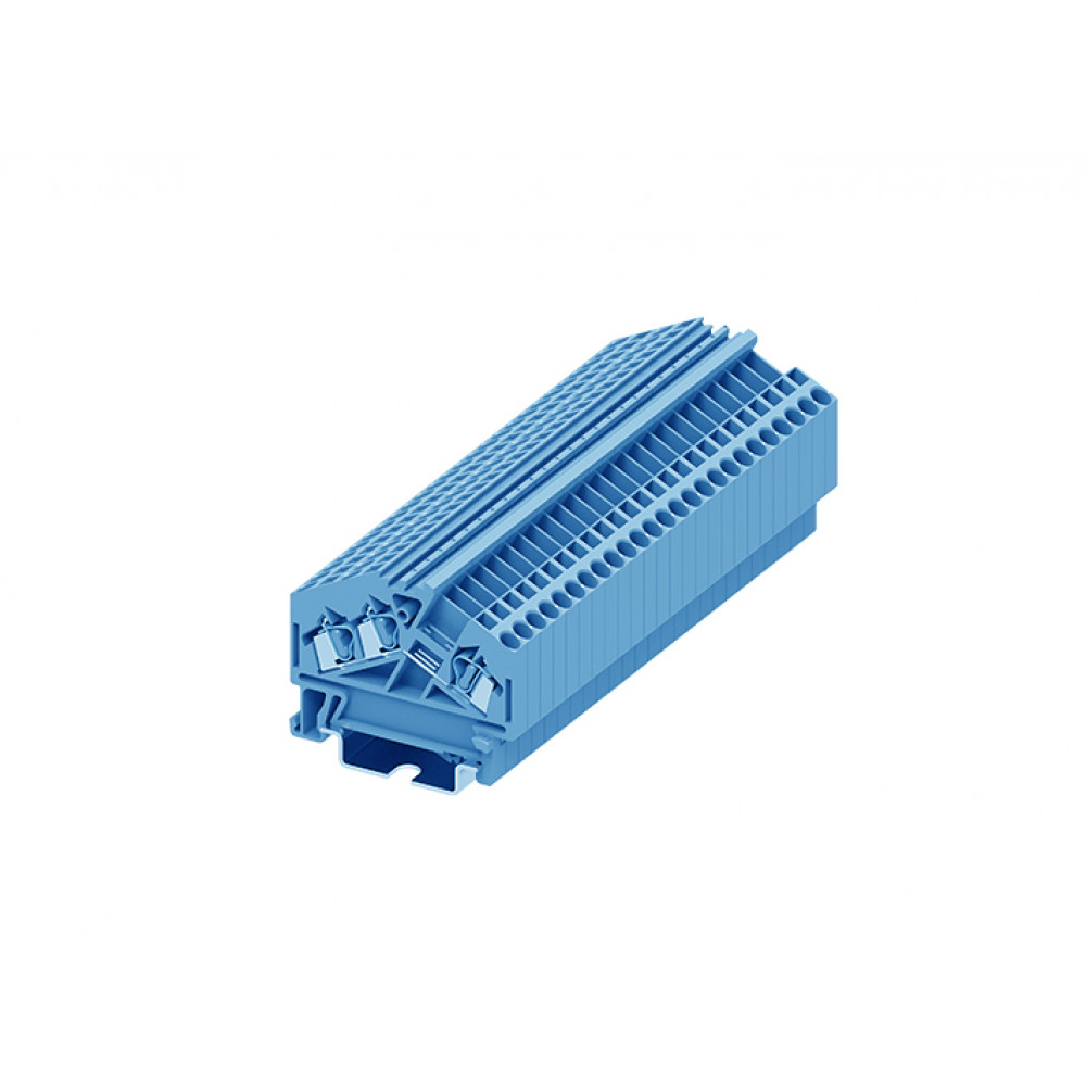 Проходная клемма, 3 точки подключения, тип фиксации провода: пружинный, номинальное сечение: 2,5 мм кв., 24А, 800V, ширина: 5 мм, цвет: синий, тип монтажа: DIN35