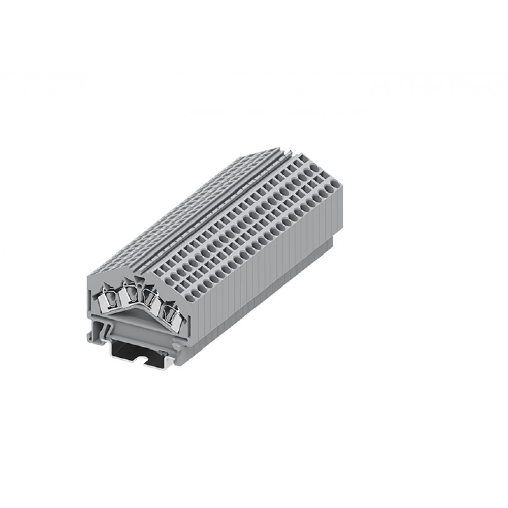 Проходная клемма, угловая, 4 точки подключения, тип фиксации провода: пружинный, номинальное сечение: 2,5 мм кв., 24A, 800V, ширина: 5 мм, цвет: серый, тип монтажа: DIN35