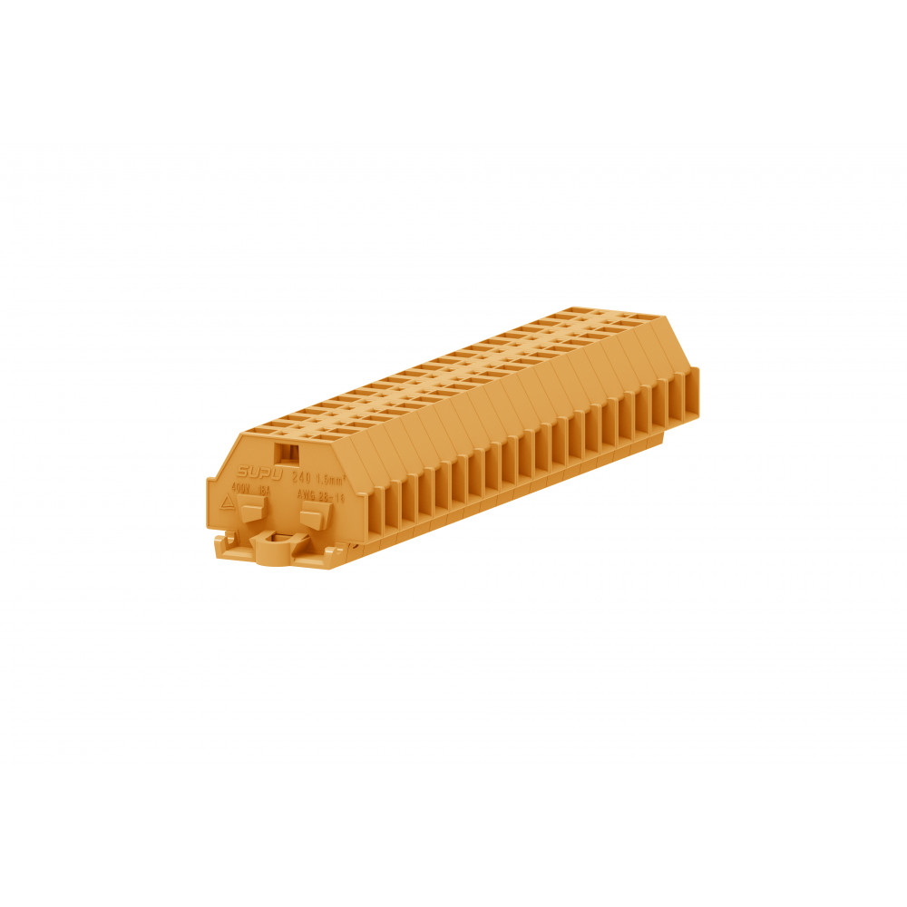 Проходная клемма (MINI) 240302, Проходная клемма, MINI, боковой подвод кабеля, 2 точки подключения, тип фиксации провода: пружинный, номинальное сечение: 1,5 мм кв., 18A, 400V, ширина: 5 мм, цвет: оранжевый, тип монтажа: монтажные фланцы