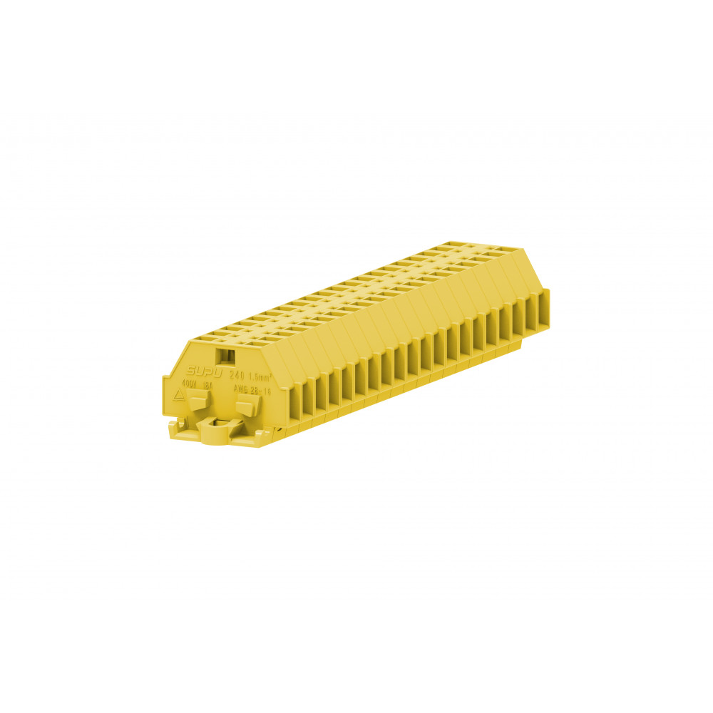 Проходная клемма (MINI) 240305, Проходная клемма, MINI, боковой подвод кабеля, 2 точки подключения, тип фиксации провода: пружинный, номинальное сечение: 1,5 мм кв., 18A, 400V, ширина: 5 мм, цвет: желтый, тип монтажа: монтажные фланцы