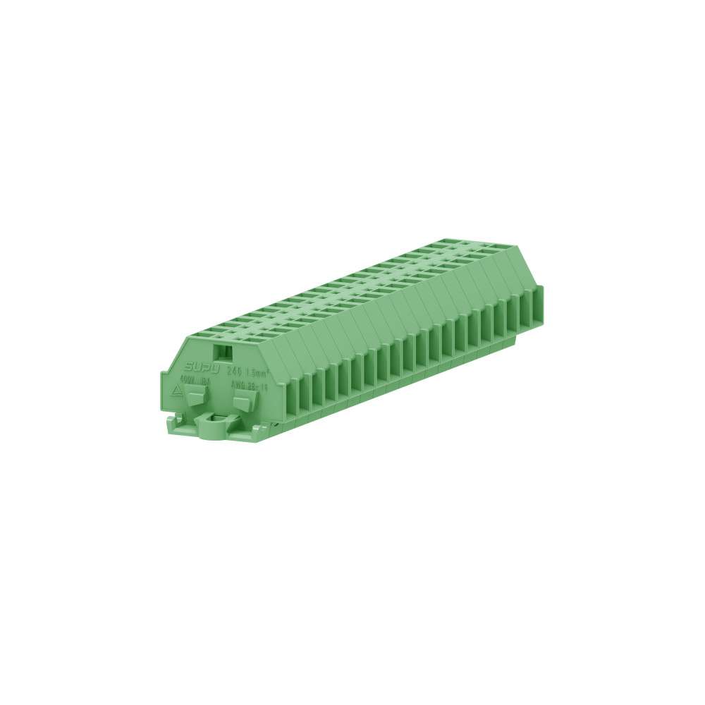 Проходная клемма (MINI) 240306, Проходная клемма, MINI, боковой подвод кабеля, 2 точки подключения, тип фиксации провода: пружинный, номинальное сечение: 1,5 мм кв., 18A, 400V, ширина: 5 мм, цвет: зеленый, тип монтажа: монтажные фланцы