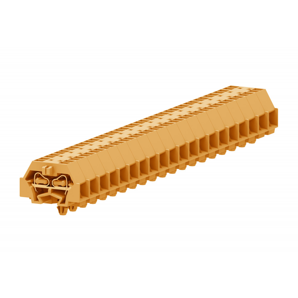 Проходная клемма (MINI) 240342, Проходная клемма, MINI, боковой подвод кабеля, 4 точки подключения, тип фиксации провода: пружинный, номинальное сечение: 1,5 мм кв., 18A, 400V, ширина: 8 мм, цвет: оранжевый, тип монтажа: защелки в панель