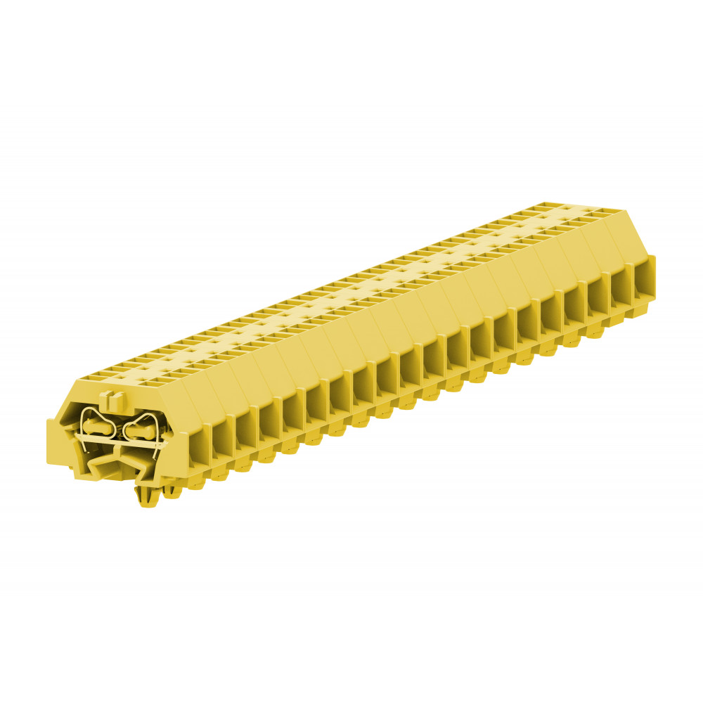 Проходная клемма (MINI) 240345, Проходная клемма, MINI, боковой подвод кабеля, 4 точки подключения, тип фиксации провода: пружинный, номинальное сечение: 1,5 мм кв., 18A, 400V, ширина: 8 мм, цвет: желтый, тип монтажа: защелки в панель