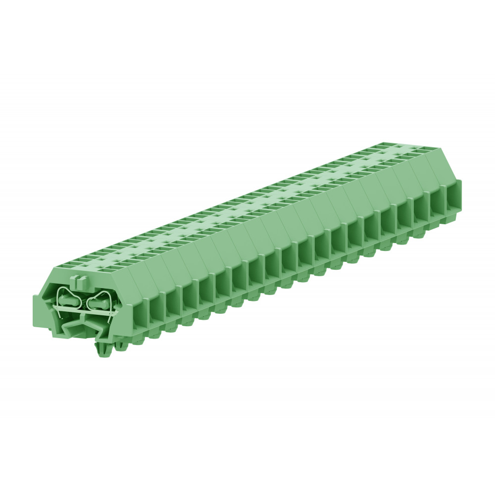 Проходная клемма, MINI, боковой подвод кабеля, 4 точки подключения, тип фиксации провода: пружинный, номинальное сечение: 1,5 мм кв., 18A, 400V, ширина: 8 мм, цвет: зеленый, тип монтажа: защелки в панель