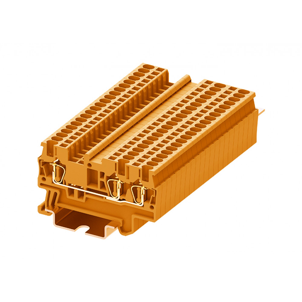 Проходная клемма, 3 точки подключения, тип фиксации провода: пружинный, номинальное сечение: 1,5 мм кв., 17,5A, 500V, ширина: 4,2 мм, цвет: оранжевый, тип монтажа: DIN35