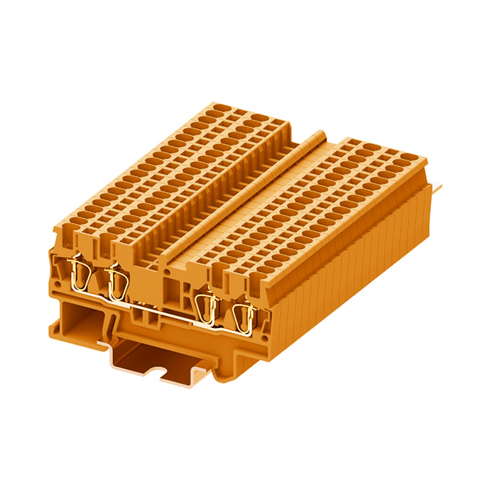 Проходная клемма, 4 точки подключения, тип фиксации провода: пружинный, номинальное сечение: 1,5 мм кв., 17,5A, 500V, ширина: 4,2 мм, цвет: оранжевый, тип монтажа: DIN35