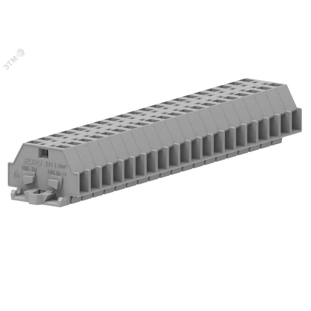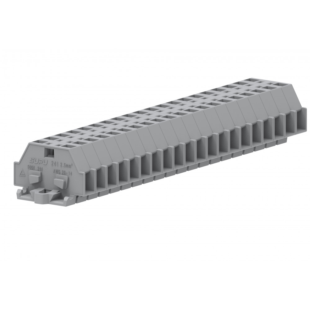 Проходная клемма (MINI) 241301, Проходная клемма, MINI, боковой подвод кабеля, 2 точки подключения, тип фиксации провода: пружинный, номинальное сечение: 2,5 мм кв., 24A, 500V, ширина: 6 мм, цвет: серый, тип монтажа: монтажные фланцы