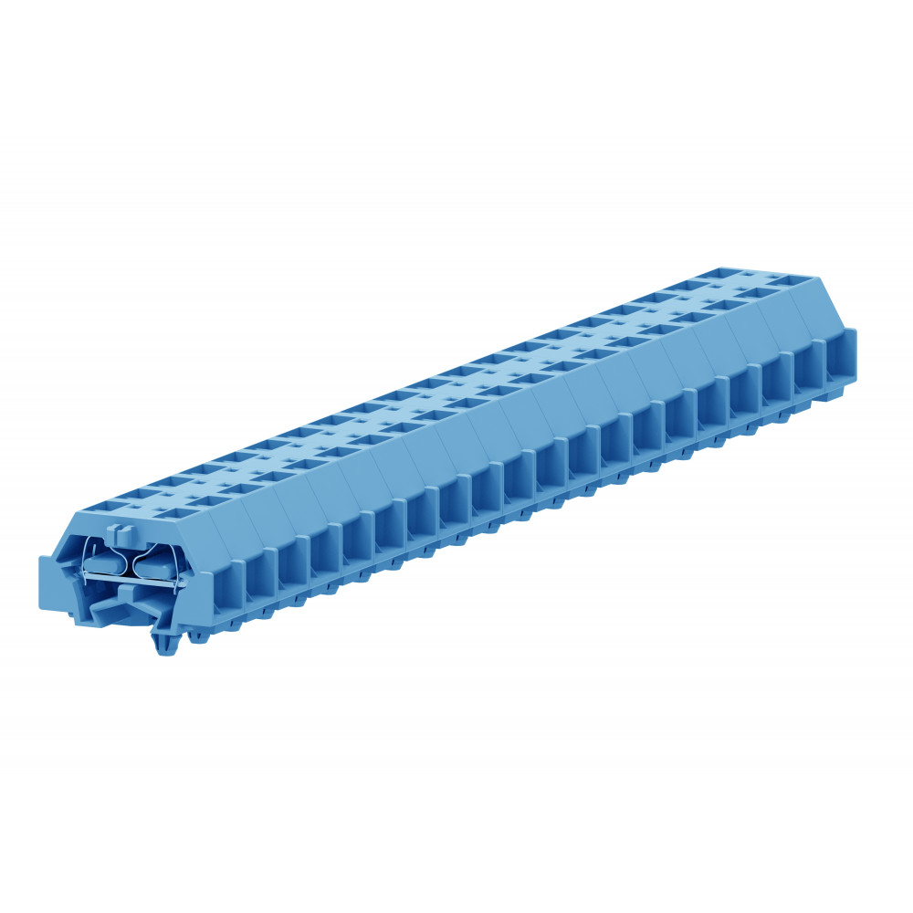 Проходная клемма, MINI, боковой подвод кабеля, 4 точки подключения, тип фиксации провода: пружинный, номинальное сечение: 2,5 мм кв., 24A, 500V, ширина: 10 мм, цвет: синий, тип монтажа: защелки в панель