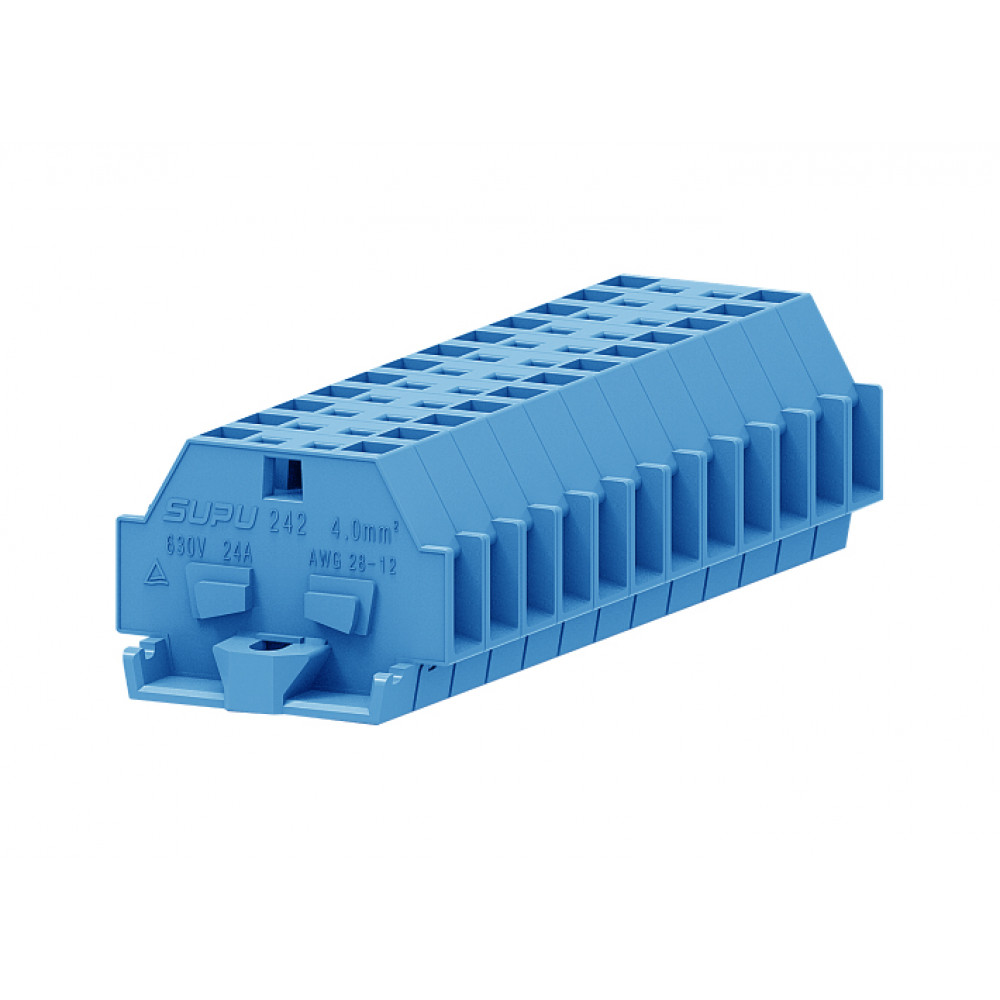 Доставка Проходная клемма (MINI) 242304 , Проходная клемма, MINI, боковой подвод кабеля, 2 точки подключения, тип фиксации провода: пружинный, номинальное сечение: 4 мм кв., 24A, 630V, ширина: 7 мм, цвет: синий, тип монтажа: монтажные фланцы