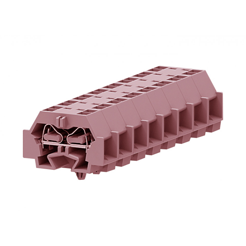 Проходная клемма, MINI, боковой подвод кабеля, 4 точки подключения, тип фиксации провода: пружинный, номинальное сечение: 4 мм кв., 24A, 630V, ширина: 12 мм, цвет: розовый, тип монтажа: защелки в панель