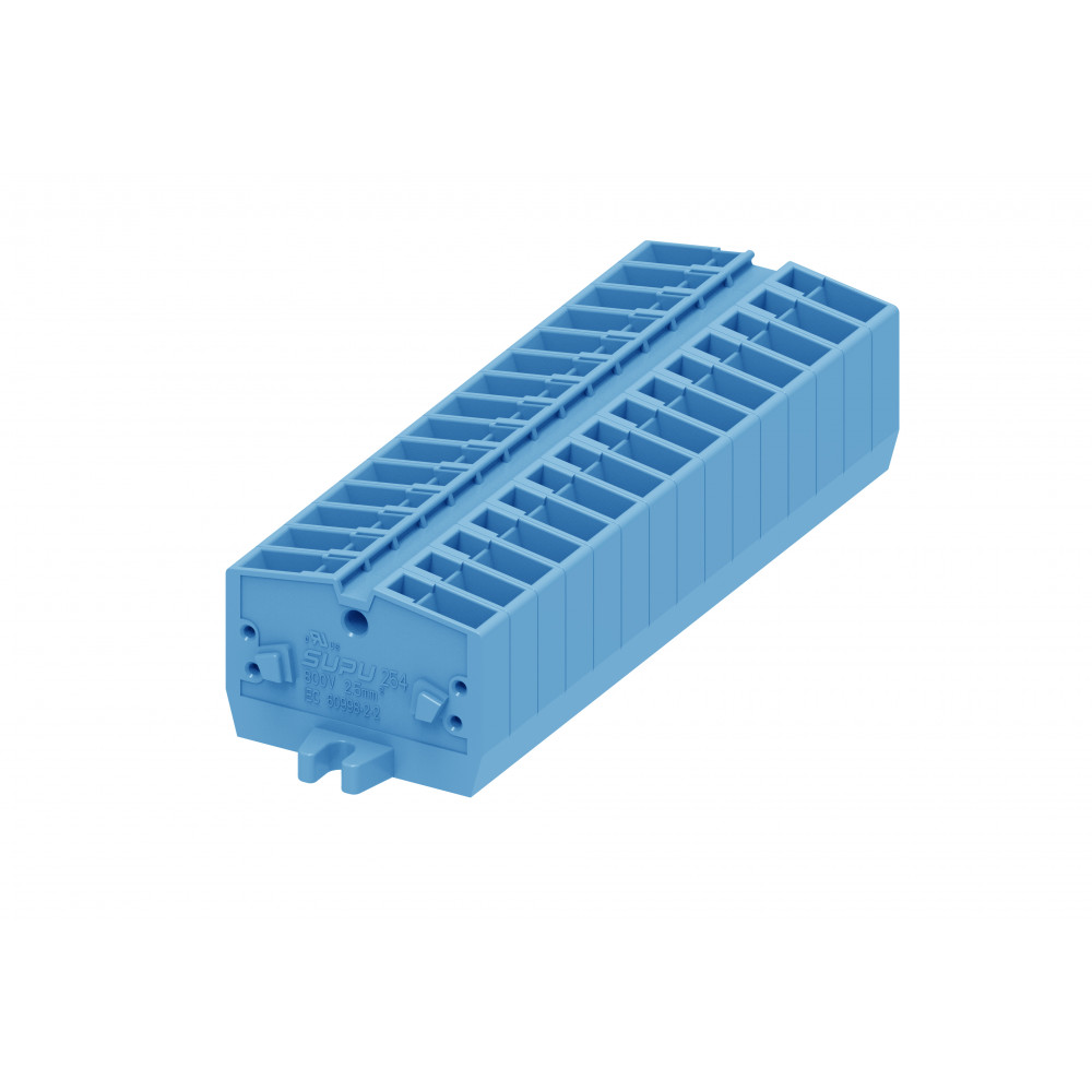 Проходная клемма (MINI) 254304, Проходная клемма, MINI, верхний подвод кабеля, 2 точки подключения, тип фиксации провода: пружинный, номинальное сечение: 2,5 мм кв., 24A, 800V, ширина: 6 мм, цвет: синий, тип монтажа: монтажные фланцы