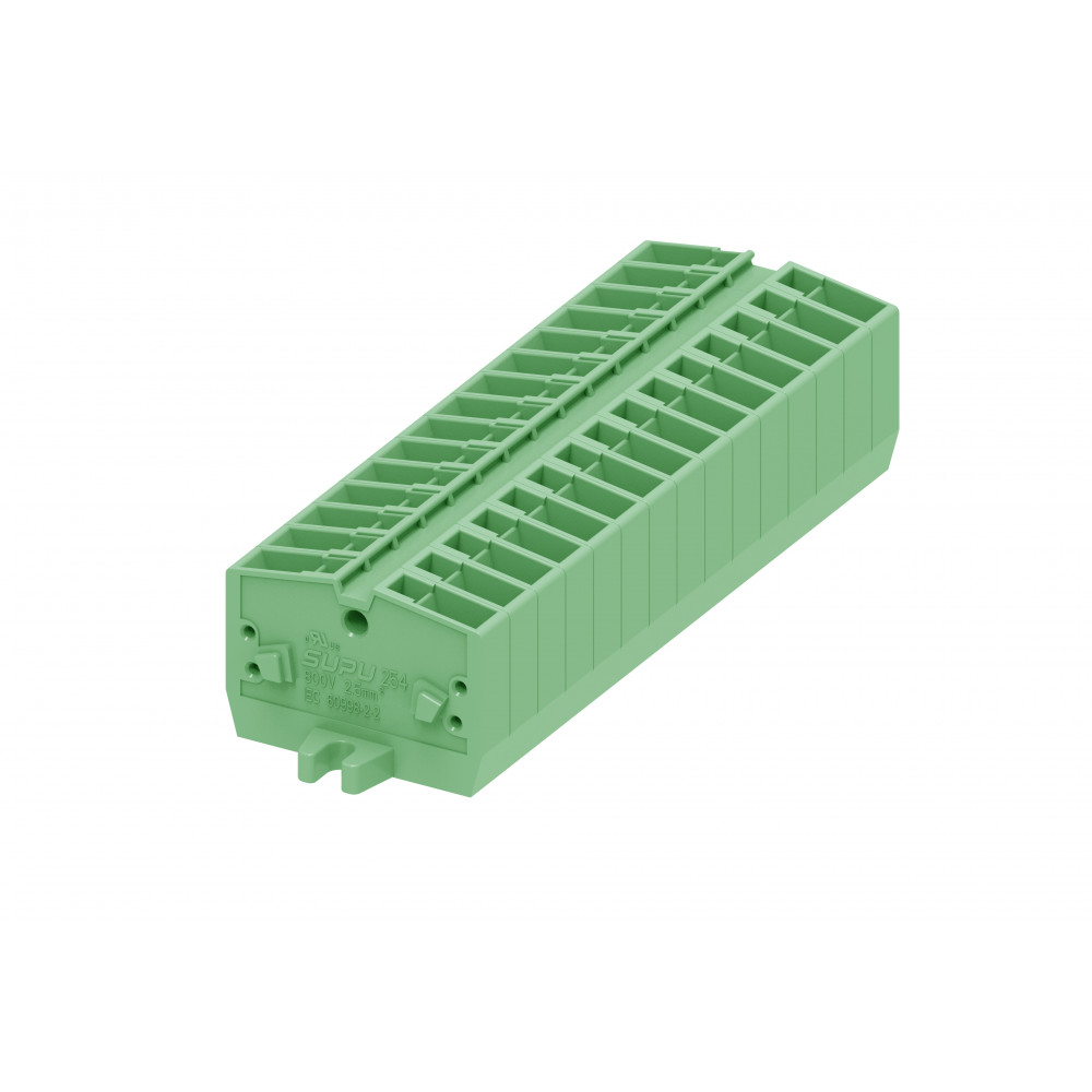 Проходная клемма (MINI) 254306, Проходная клемма, MINI, верхний подвод кабеля, 2 точки подключения, тип фиксации провода: пружинный, номинальное сечение: 2,5 мм кв., 24A, 800V, ширина: 6 мм, цвет: зеленый, тип монтажа: монтажные фланцы