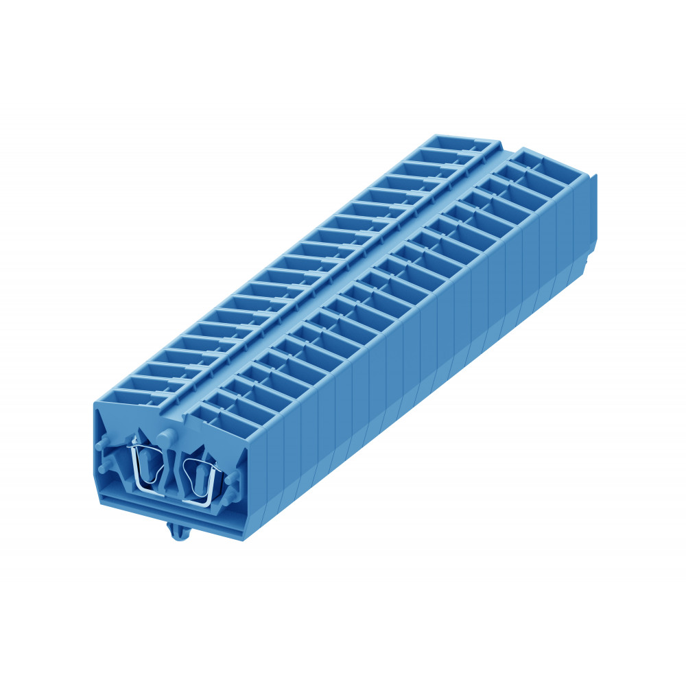 Проходная клемма, MINI, верхний подвод кабеля, 2 точки подключения, тип фиксации провода: пружинный, номинальное сечение: 2,5 мм кв., 24A, 800V, ширина: 5 мм,цвет: синий, тип монтажа: якорная защелка в панель