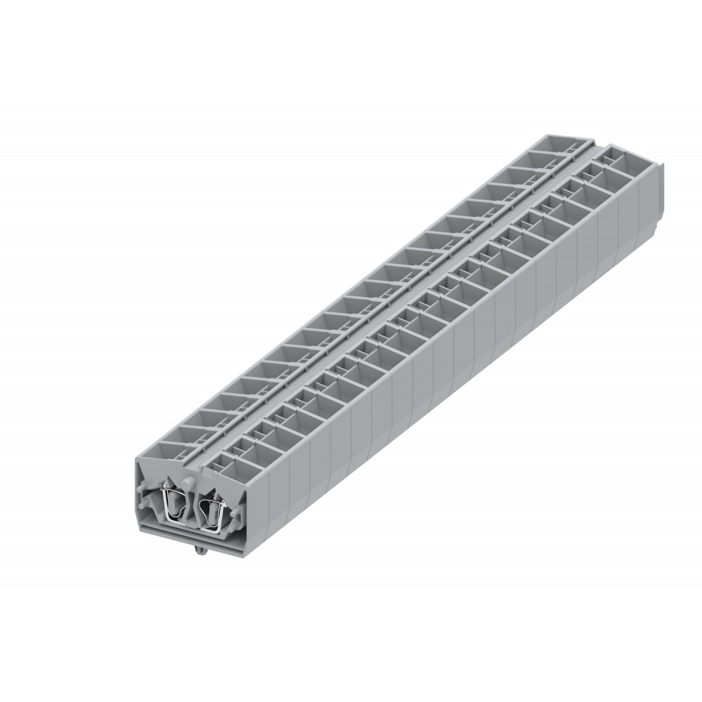 Проходная клемма, MINI, верхний подвод кабеля, 4 точки подключения, тип фиксации провода: пружинный, номинальное сечение: 2,5 мм кв., 24A, 800V, ширина: 10 мм, цвет: серый, тип монтажа: якорная защелка в панель