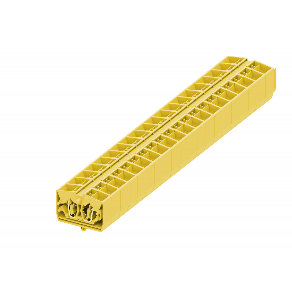 Проходная клемма, MINI, верхний подвод кабеля, 4 точки подключения, тип фиксации провода: пружинный, номинальное сечение: 2,5 мм кв., 24A, 800V, ширина: 10 мм, цвет: желтый, тип монтажа: якорная защелка в панель