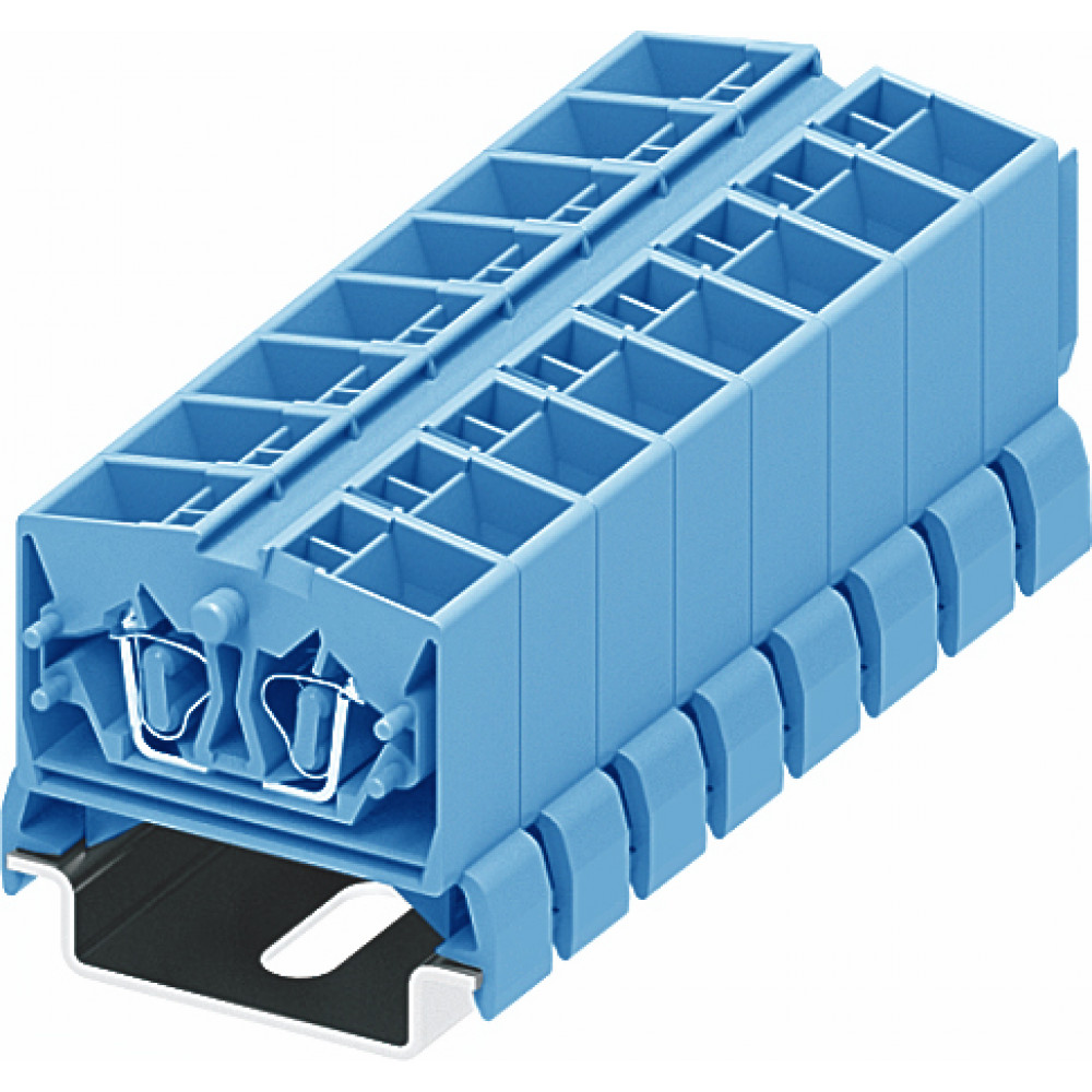 Проходная клемма, MINI, верхний подвод кабеля, 4 точки подключения, тип фиксации провода: пружинный, номинальное сечение: 2,5 мм кв., 24A, 800V, ширина: 10 мм, цвет: синий, тип монтажа: DIN35