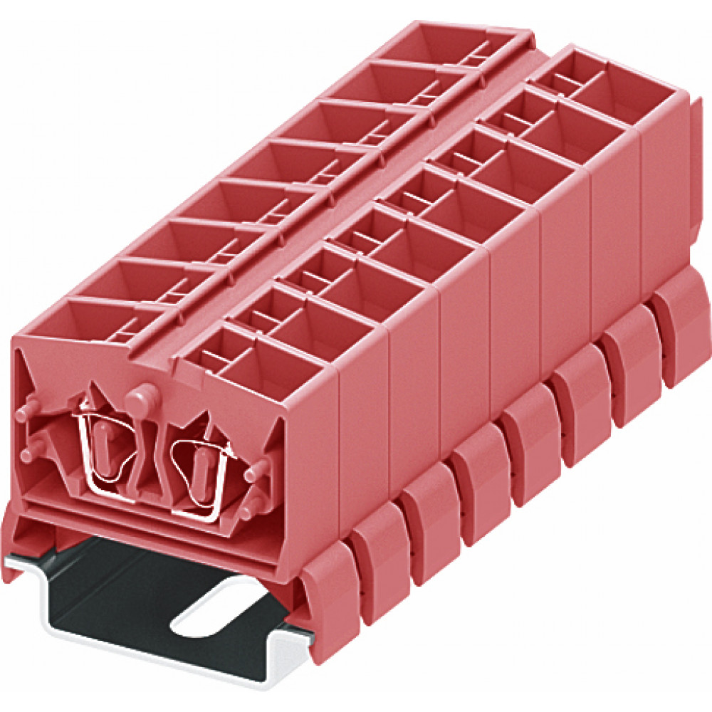 Проходная клемма (MINI) 254389, Проходная клемма, MINI, верхний подвод кабеля, 4 точки подключения, тип фиксации провода: пружинный, номинальное сечение: 2,5 мм кв., 24A, 800V, ширина: 10 мм, цвет: розовый, тип монтажа: DIN35
