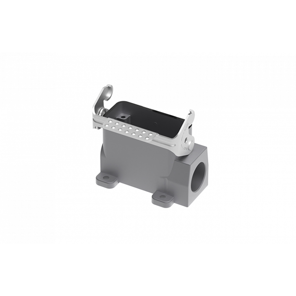 Основание разъема на панель, закрытое, типоразмер 10A, без уплотнителя, 1 отверстие с резьбой для кабельных вводов M25x1,5, с одной защелкой, без защитной крышки, материал корпуса: алюминиевый сплав