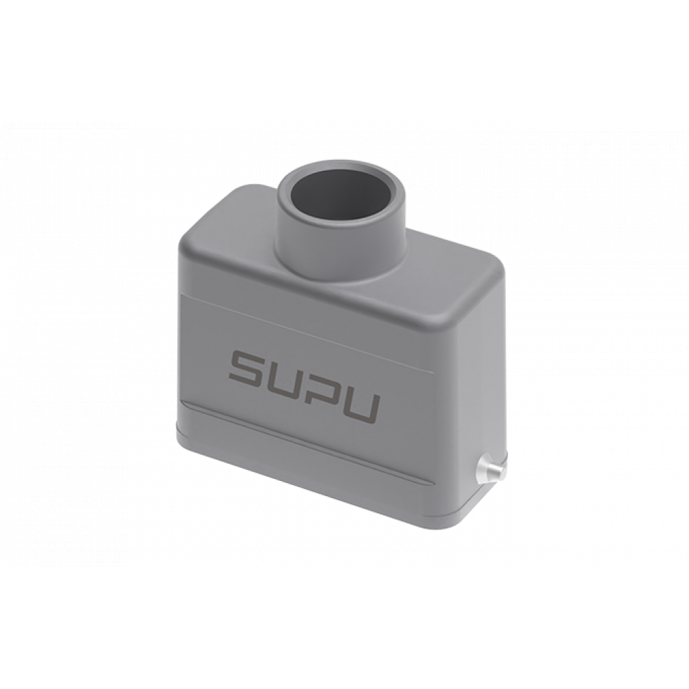 Крышка разъема на кабель, типоразмер 10A, с уплотнителем, 1 отверстие с резьбой для кабельных вводов M20x1,5, с резьбовым удлинителем, с верхним расположением, без защелки (упоры под одну защелку), материал корпуса: алюминиевый сплав