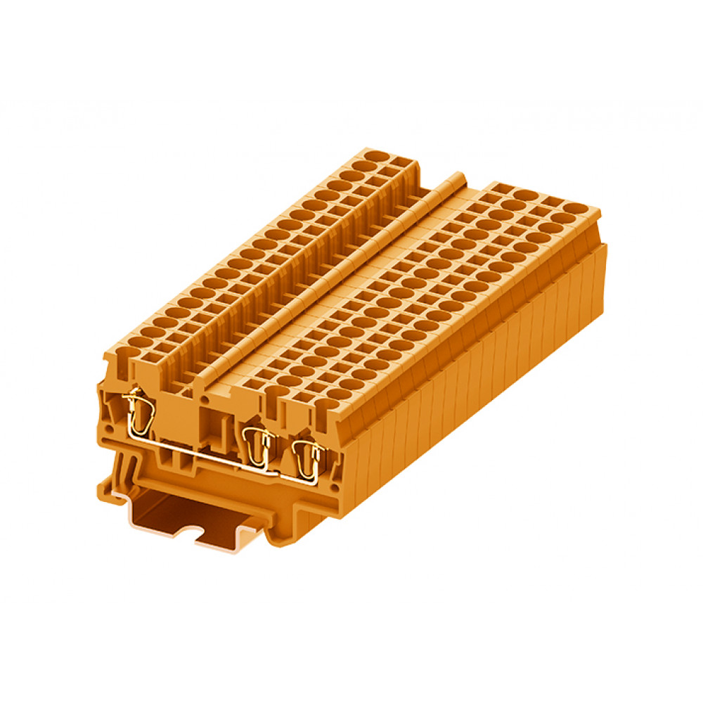 Проходная клемма, 3 точки подключения, тип фиксации провода: пружинный, номинальное сечение: 2,5 мм кв., 24A, 500V, ширина: 5,2 мм, цвет: оранжевый, тип монтажа: DIN35