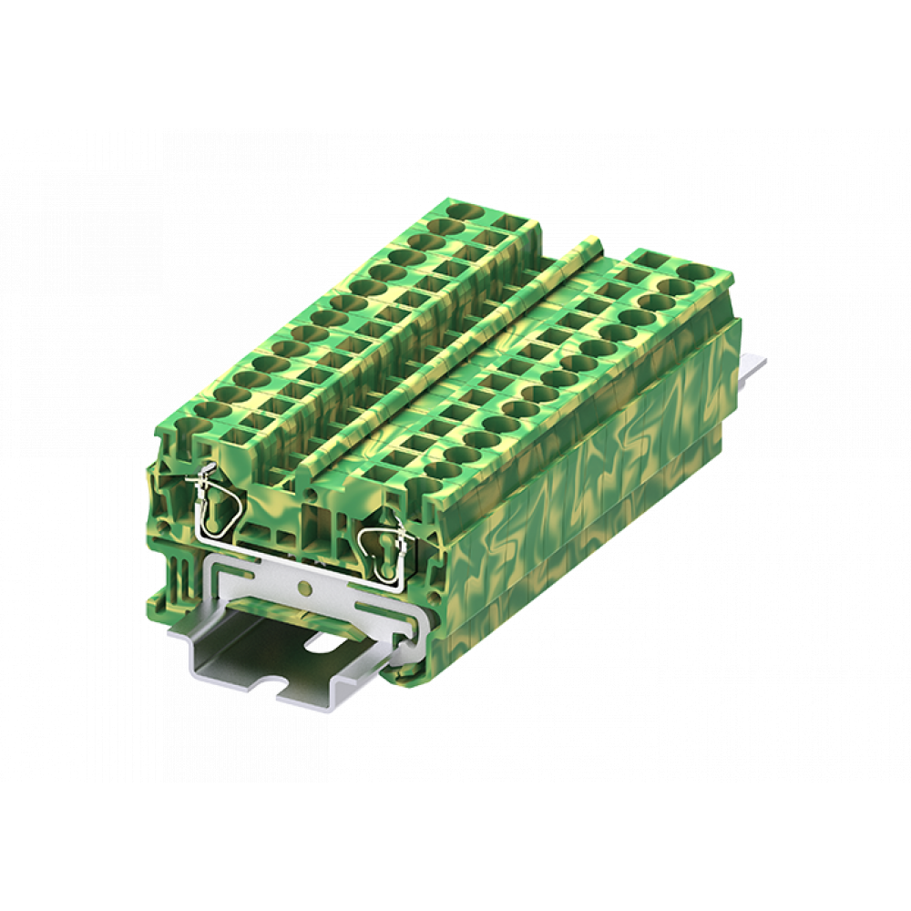 Заземляющая клемма, тип фиксации провода: пружинный, номинальное сечение: 4 мм кв., 32A, 800V, ширина: 6 мм, цвет: желто-зеленый, тип монтажа: DIN35