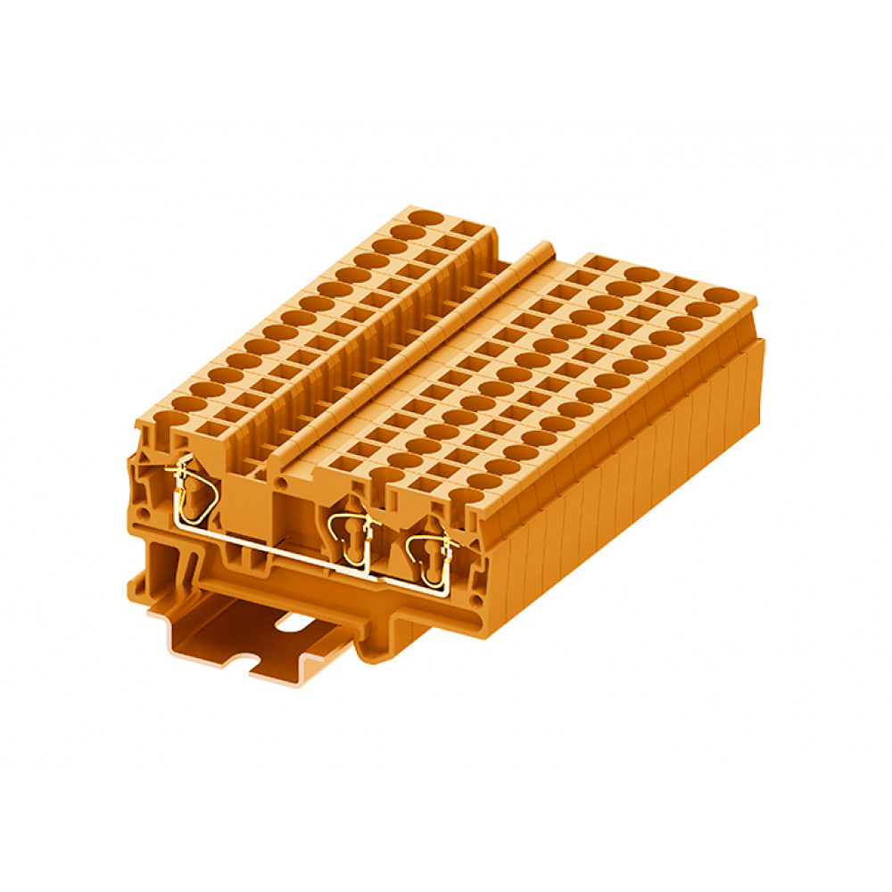 Проходная клемма, 3 точки подключения, тип фиксации провода: пружинный, номинальное сечение: 4 мм кв., 32A, 800V, ширина: 6,2 мм, цвет: оранжевый, тип монтажа: DIN35