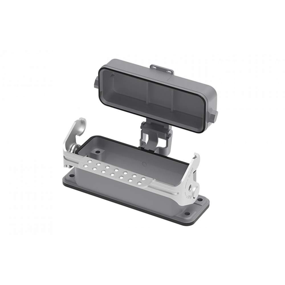 Основание разъема на панель, открытое, типоразмер 16A, без уплотнителя, с одной защелкой, с защитной крышкой, материал корпуса: алюминиевый сплав
