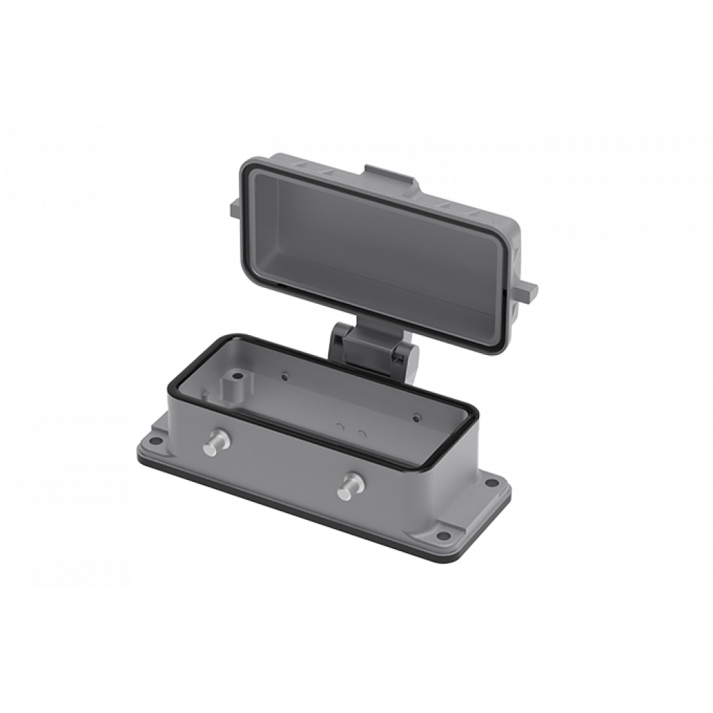 Основание разъема на панель, открытое, типоразмер 16B, с уплотнителем, без защелок (упоры для двух защелок), с защитной крышкой, материал корпуса: алюминиевый сплав