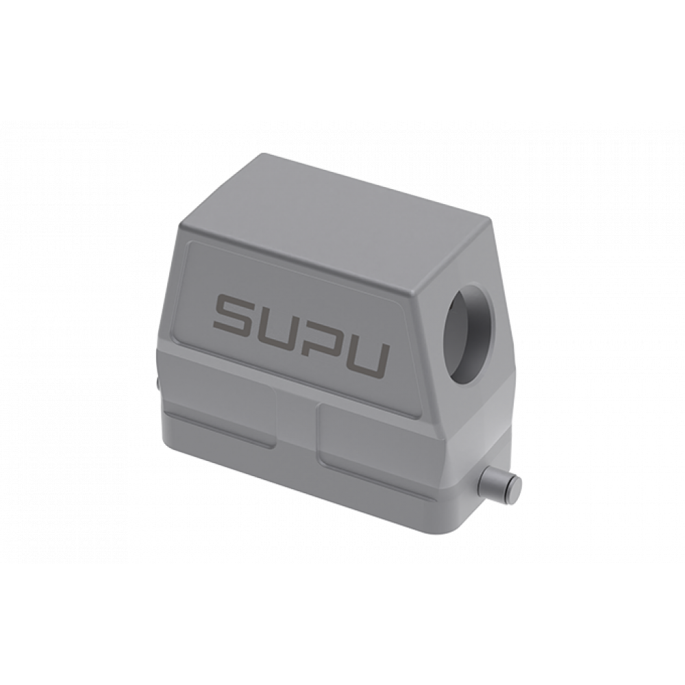 Крышка разъема S16B-SEH-2B-M40, Крышка разъема на кабель, типоразмер 16B, высокое исполнение, без уплотнителя, 1 отверстие с резьбой для кабельных вводов M40x1,5, с боковым расположением, без защелки (упоры под одну защелку), материал корпуса: алюминиевый сплав
