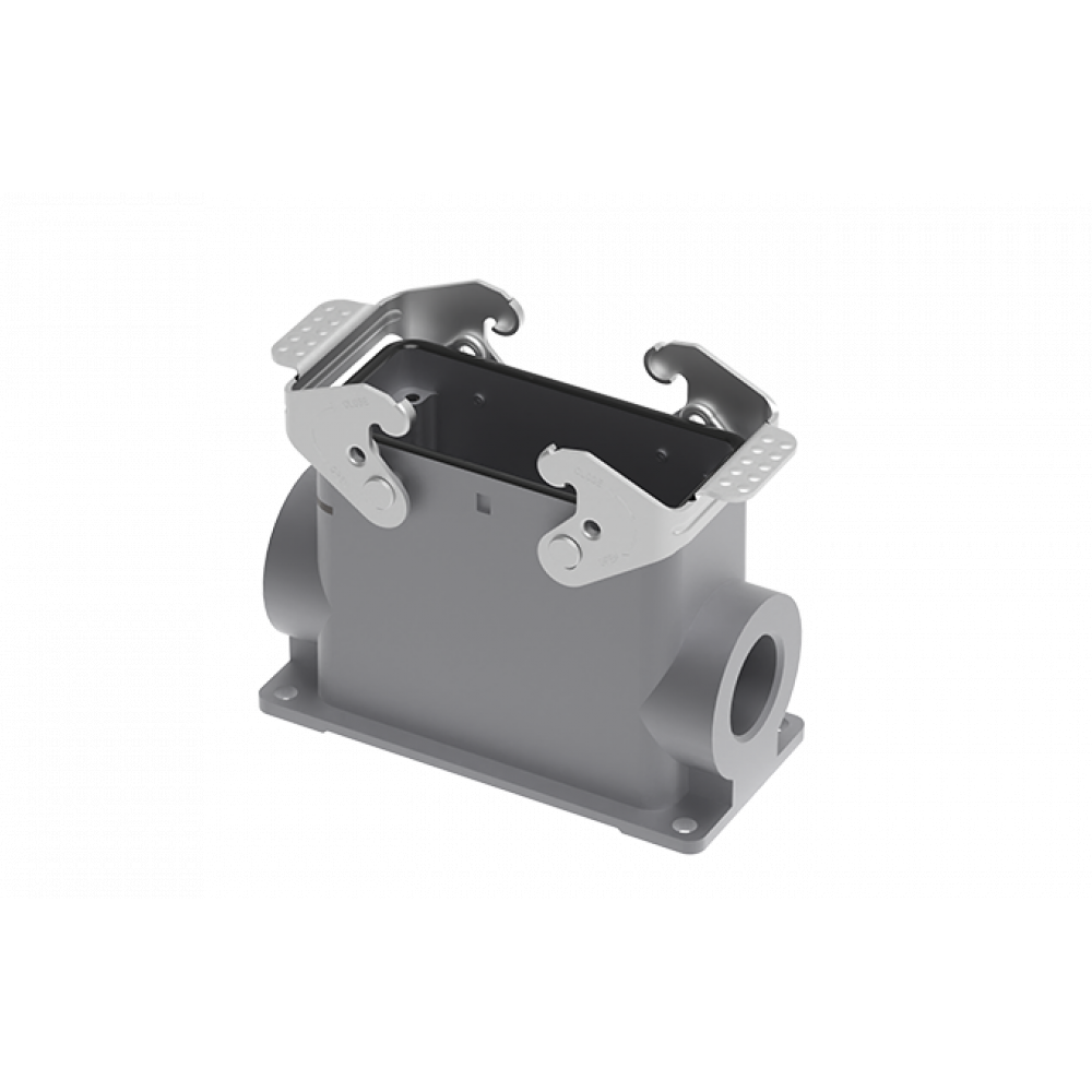 Закрытое основание разъема S16B-SMH-2L.M-2M32, Основание разъема на панель, закрытое, типоразмер 16B, высокое исполнение, с уплотнителем, 2 отверстия с резьбой для кабельных вводов M32x1,5, с двумя защелками, без защитной крышки, материал корпуса: алюминиевый сплав