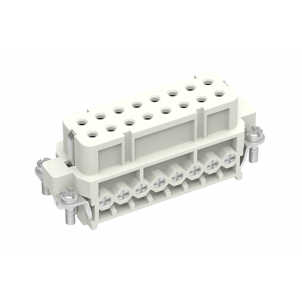 Розеточная контактная вставка, винтовая фиксация, 16 полюсов + PE, типоразмер 16A, 250V, 10A, сечение обслуживаемых проводников 0,5-2,5 мм кв, тип покрытия контактов: серебро
