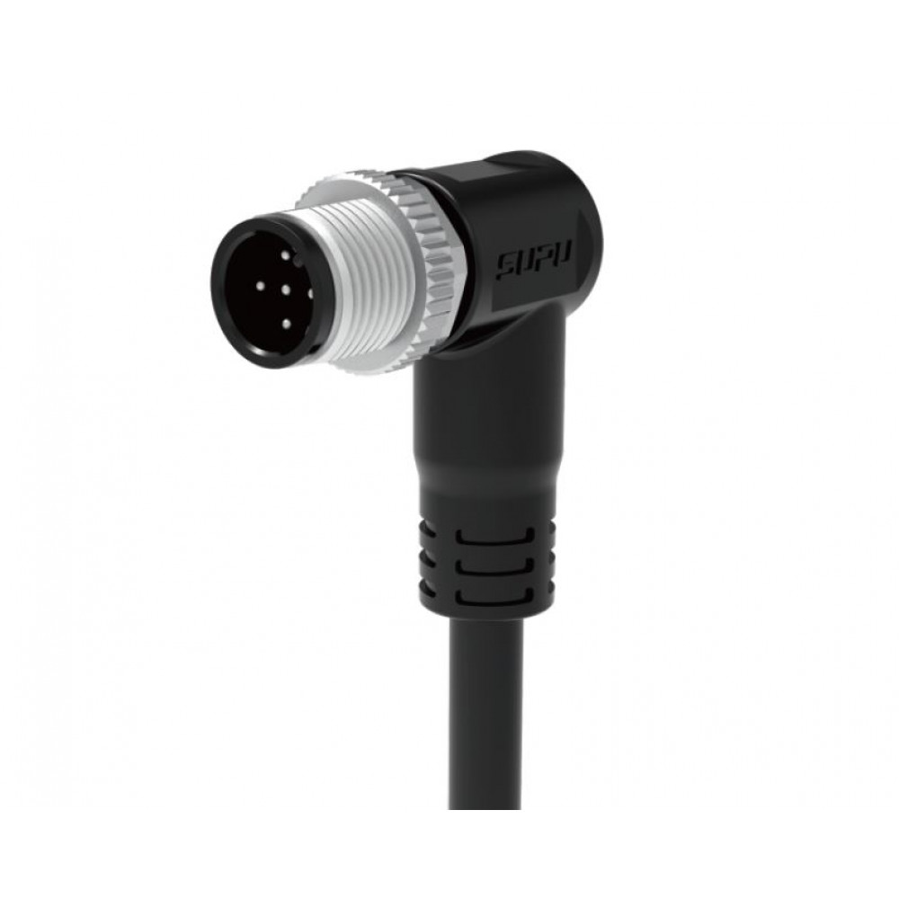 Доставка Вилочный разъем с кабелем M12D04Z-MMSRA-UP001B , Вилочный разъем с кабелем, 4 полюса, M12, угловой, длина кабеля 1 м, D-Code, материал оболочки кабеля: PVC, 4А, 250V, корпус из пластика, резьбовое соединение: цинк, неэкранированный