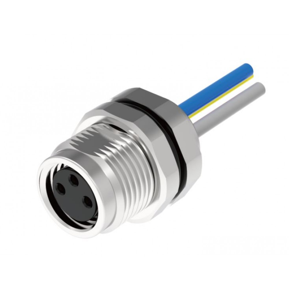 Доставка Розеточный разъем в панель M8B05C-FRHC-UC0.5 , Розеточный разъем в панель, 5 полюсов, M8, гайка спереди, с проводом 0,5 метра, B-Code, 3А, 30V, резьба на гайке M10*0.75, резьбовое соединение: латунь неэкранированный