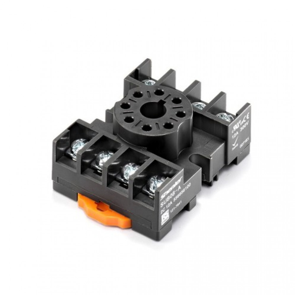 Колодка для реле SUB08-A, Колодка для реле, 2 группы переключающих контактов, винтовая фиксация провода, монтаж на DIN рейку, 300V, 12A, для реле серий: RUB