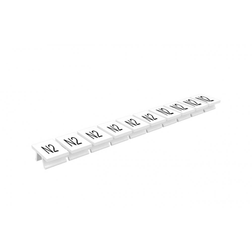 Маркировка (полоска) 308801/N2, Маркировочные шильдики, для клемм сечением 6 мм.кв., боковая / верхняя, 10 шильдиков, нанесенные символы: N2, с горизонтальным расположением, размер шильдика: 8 x 10,6 мм, цвет: белый