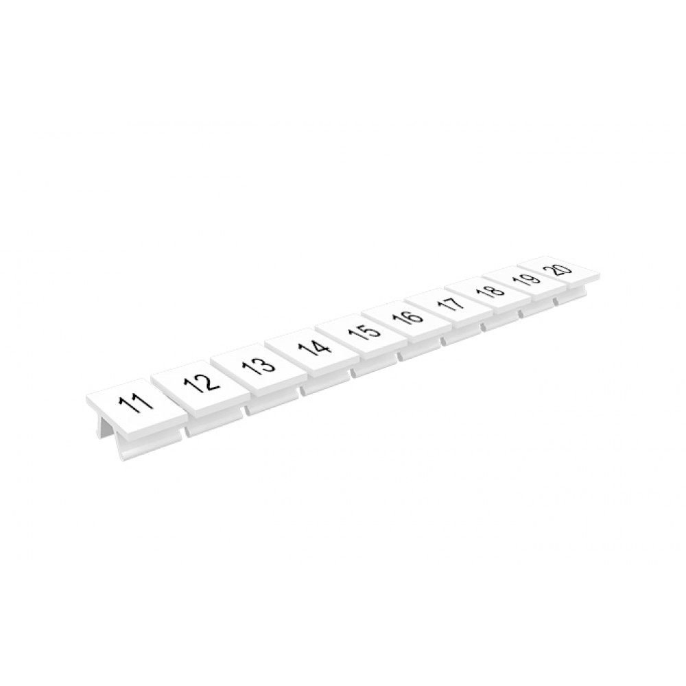 Маркировка (полоска) 310801/11...20, Маркировочные шильдики, для клемм сечением 10 мм.кв., боковая, 10 шильдиков, нанесенные символы: 11...20, с горизонтальным расположением, размер шильдика: 10 x 10,6 мм, цвет: белый