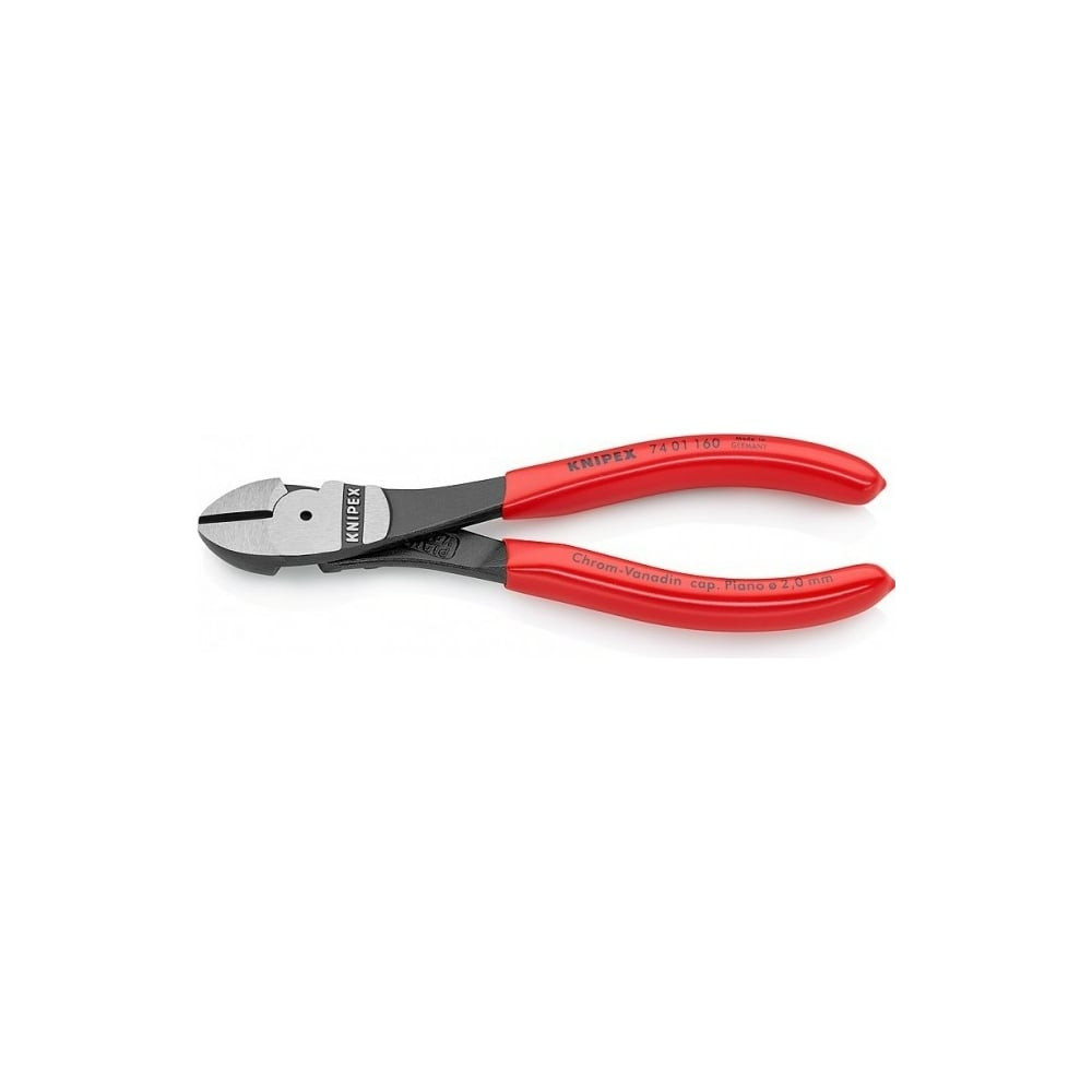 Силовые бокорезы KN-7401160, Бокорезы особой мощности с полированной поверхностью головки и режущими кромками с фаской, с пластиковыми рукоятками, диаметр среднетвердой проволоки- 3.4мм, твердой - 2.5мм, рояльной струны -2.0мм, длина 160мм