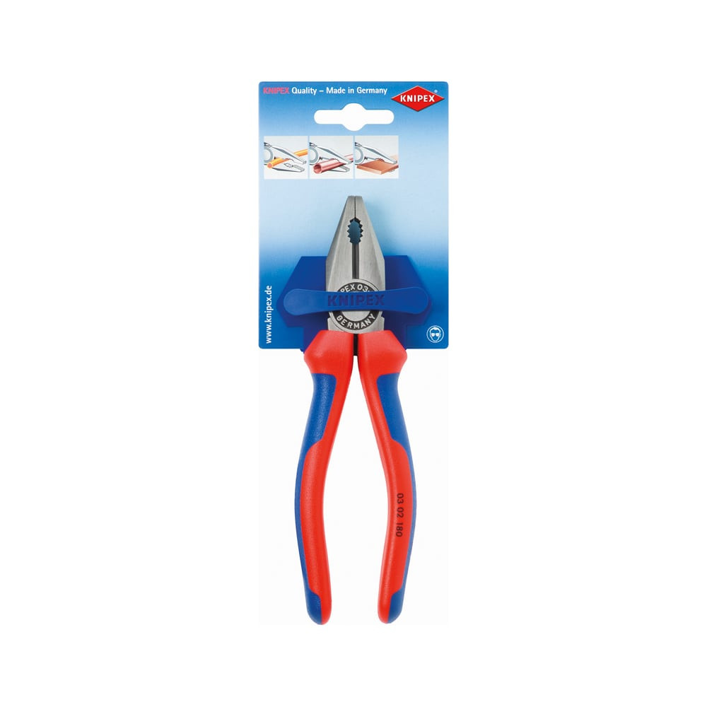 Пассатижи KN-0302180SB, Плоскогубцы комбинированные с режущей кромкой, с многокомпонентыми рукоятками, длина 180мм