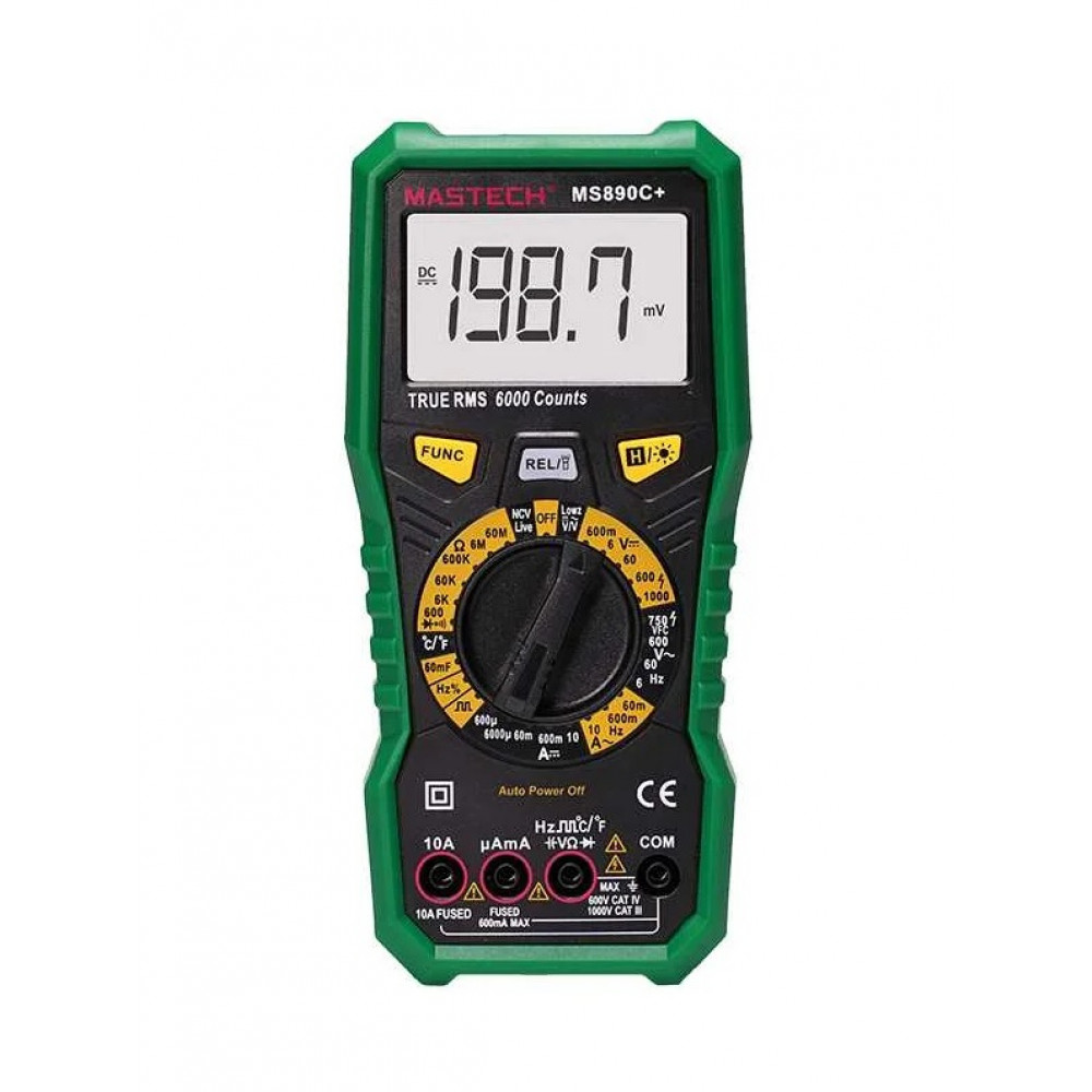 MS890C+, Мультиметр цифровой с TrueRMS, тест светодиодов, NCV, детектор фаза/ноль,частота, температура, емкость, генератор импульсов, измерение скважности, фонарик