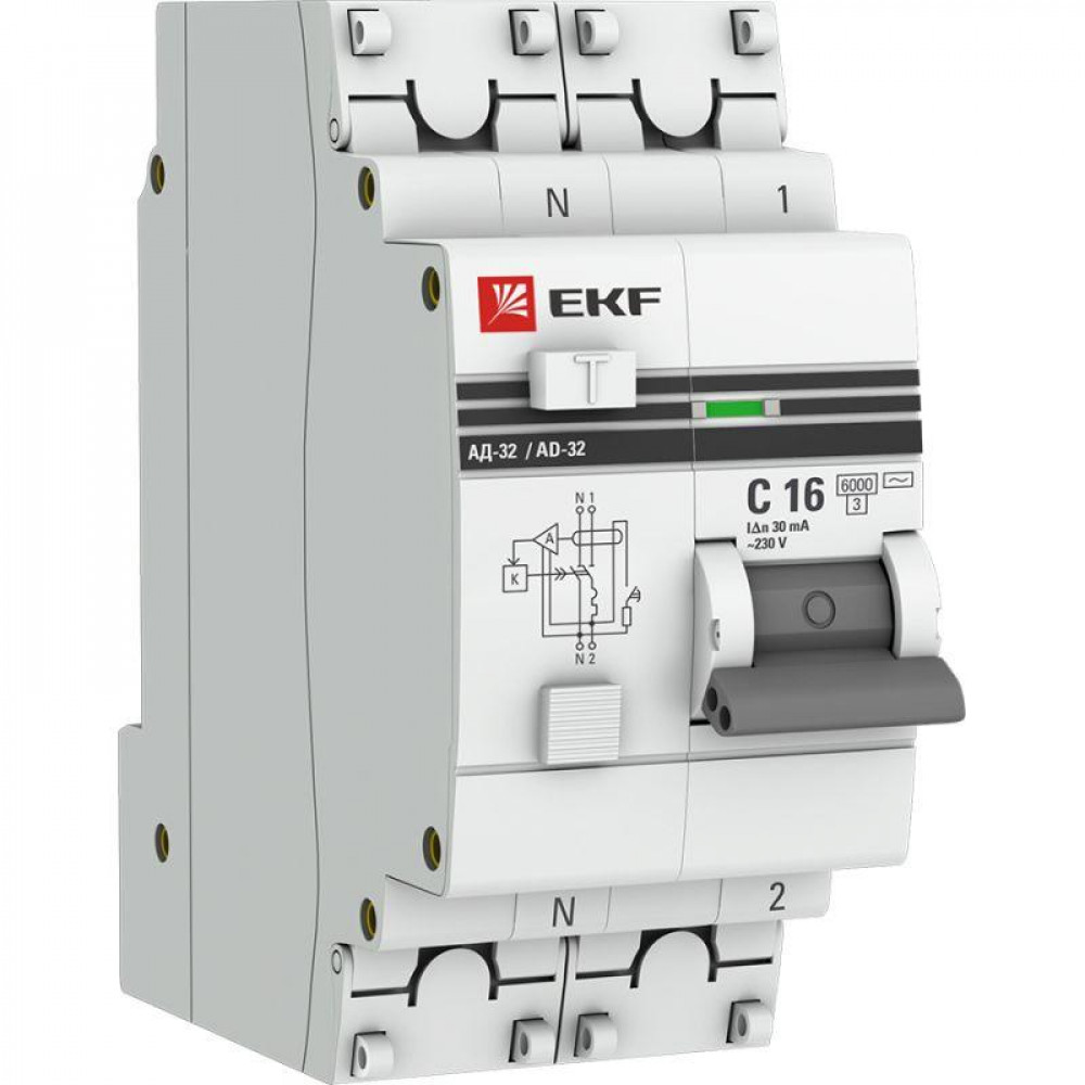 Доставка Дифференциальный автомат АД-32 1P+N 16А/30мА (хар. C, AС, электронный, защита 270В) 6кА EKF PROxima