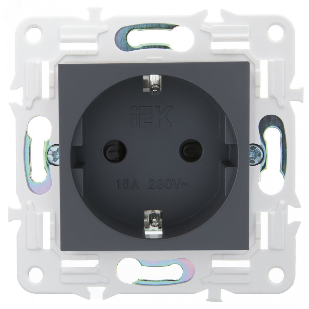 Описание SKANDY Розетка с заземлением с защитными шторками 16А безвинтовое крепление SK-R06T титан IEK SK-R14-16-1-K48