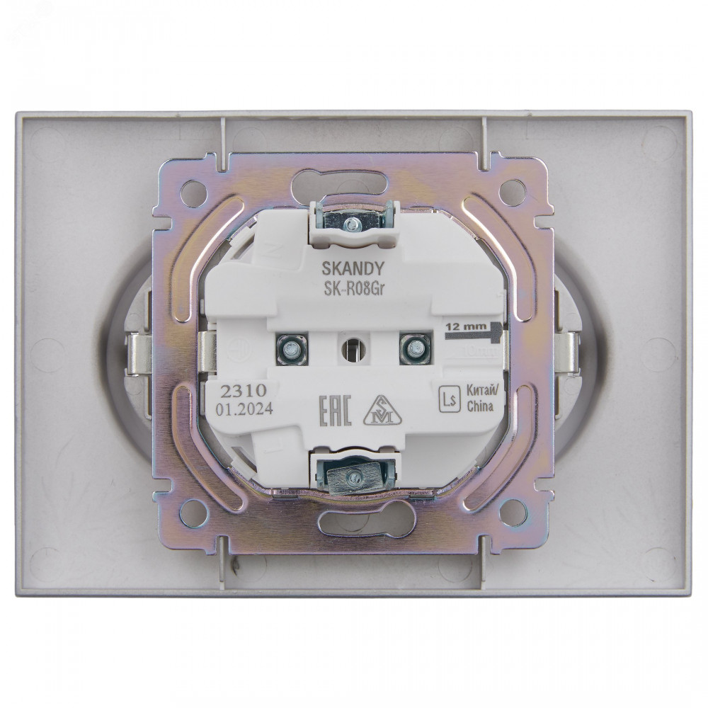 SKANDY Розетка 2-местная с заземлением без защитных шторок 16А в сборе SK-R08Gr серый IEK SK-R21-16-K03-F, Розетка скрытого монтажа