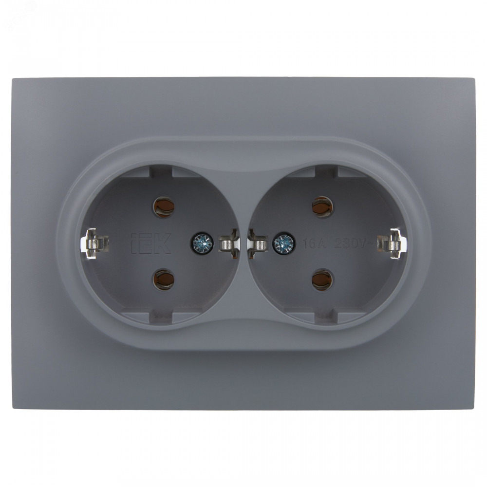Описание SKANDY Розетка 2-местная с заземлением без защитных шторок 16А в сборе SK-R08Gr серый IEK SK-R21-16-K03-F