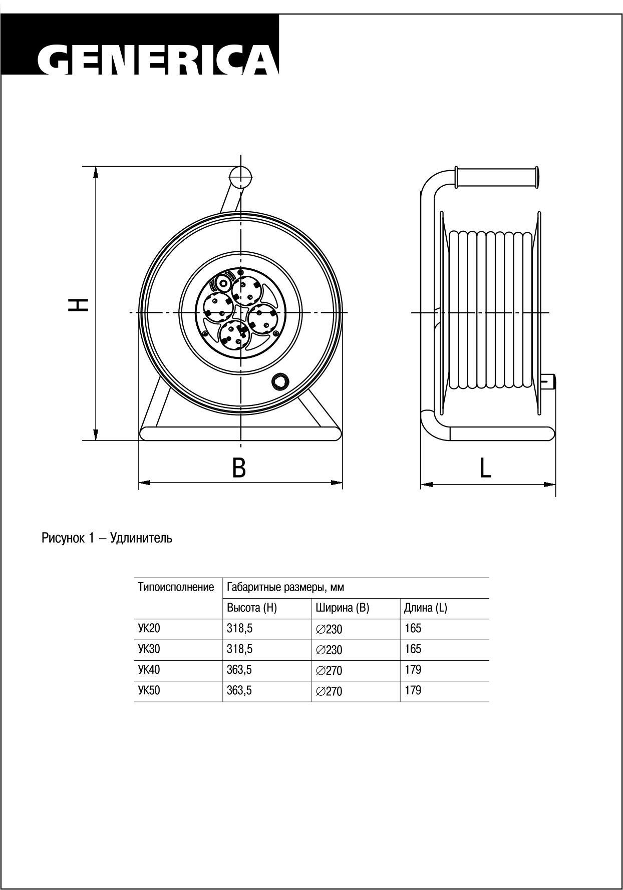 Удлинитель силовой УК20 с термозащитой 4 места 2P+PE/20м 3х1.5мм2 GENERICA WKP20-16-04-20-G, Средство маркировки