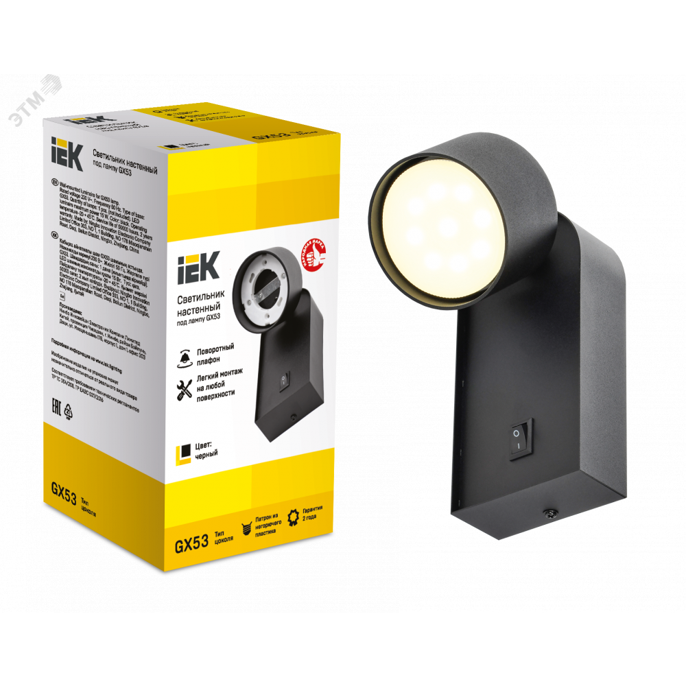 Доставка Светильник 4041 накладной настенный под лампу GX53 черный IEK LT-UBB0-4041-GX53-1-K02