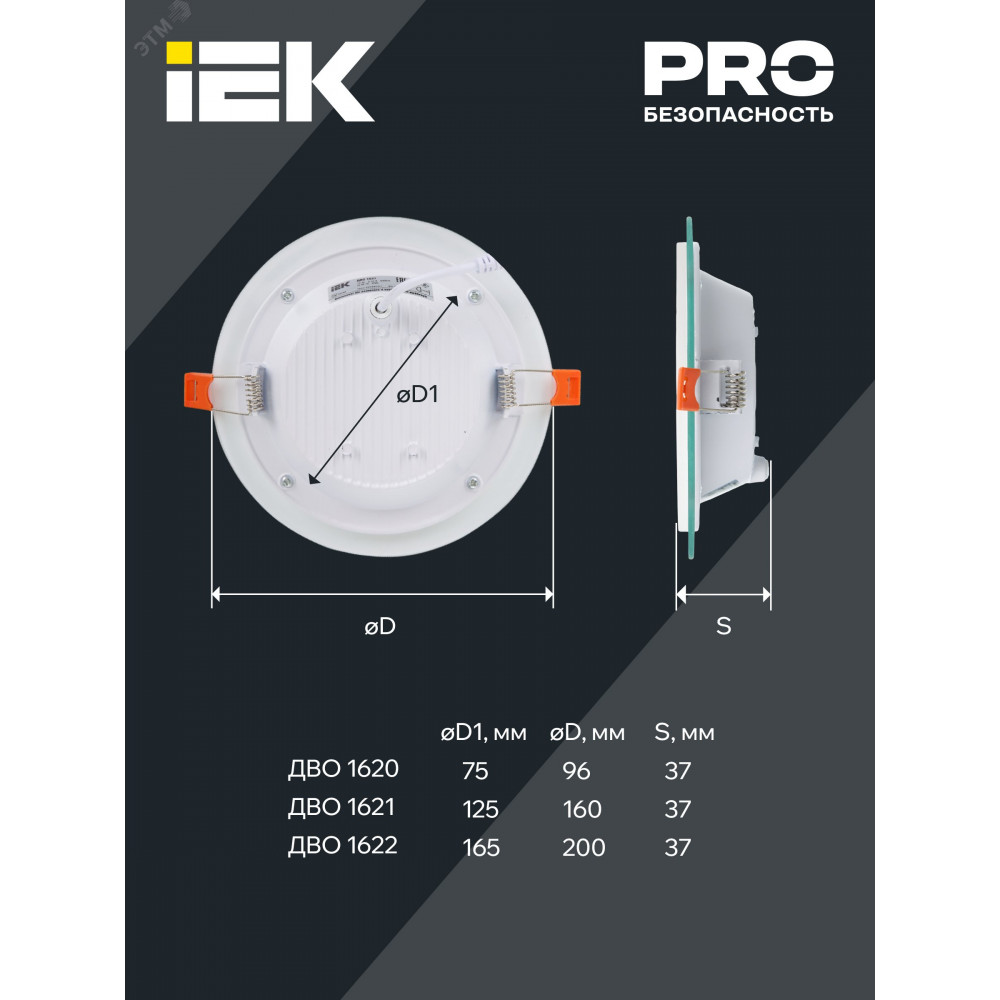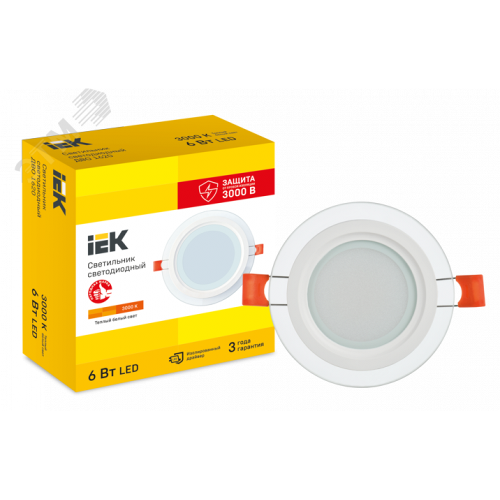Описание Светильник светодиодный встраиваемый ДВО 1620 со стеклом круг 6Вт 3000К IP20 LDVO0-1620-06-3000-K01