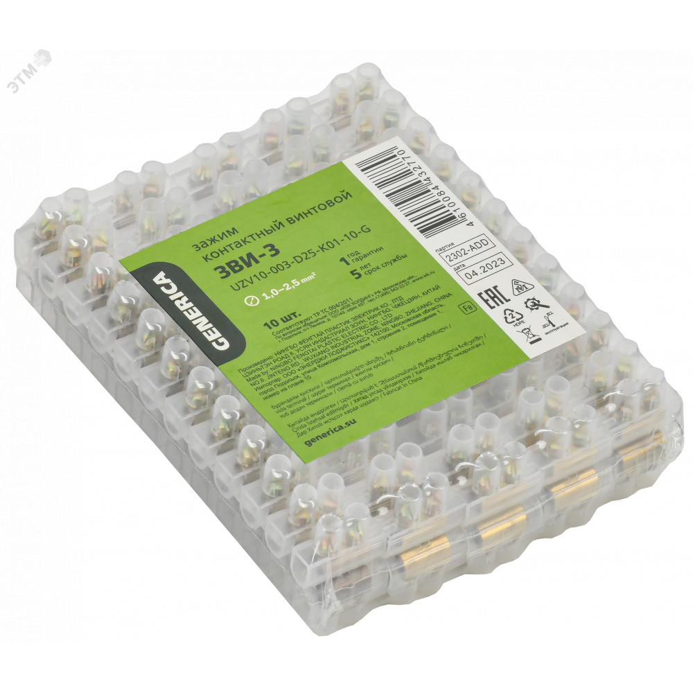 Описание Зажим винтовой ЗВИ-3 1,0-2,5мм2 12пар GENERICA UZV10-003-D25-K01-10-G