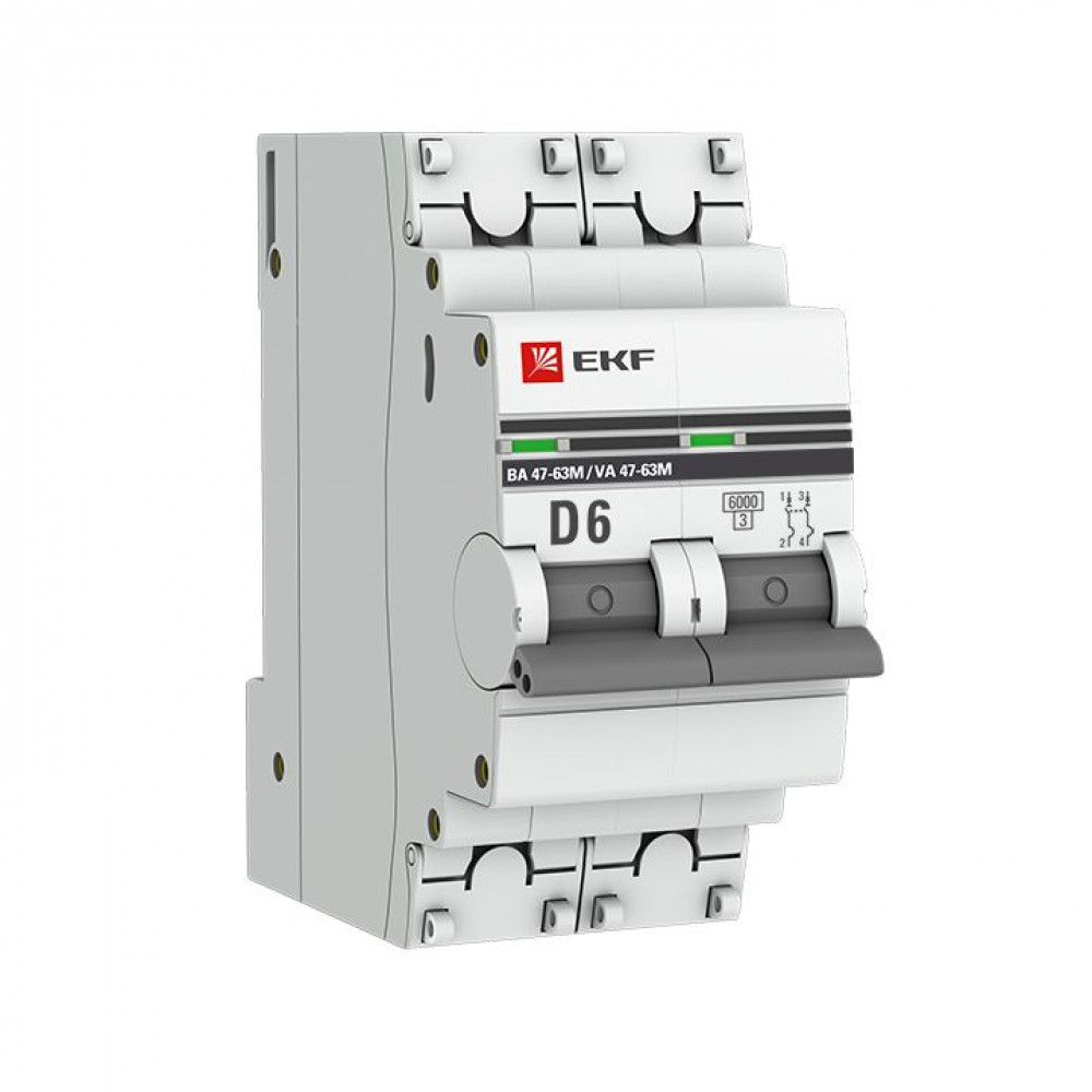 Автоматический выключатель 2P 6А (D) 6кА ВА 47-63M без теплового расцепителя EKF PROxima, Выключатель автоматический модульный